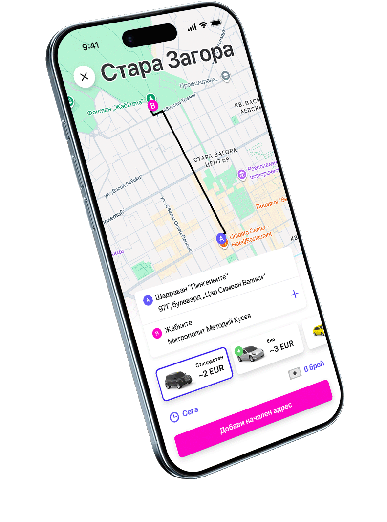 Традиционният начин за поръчка на такси често е свързан с обаждания, заети линии и несигурност. Ние заменяме това с модерно и интуитивно решение, което дава пълен контрол на клиента – от прецизното определяне на локацията до проследяването на автомобила в реално време и предварителната информация за цената. Осигуряваме прозрачност, удобство и по-висок стандарт на обслужване, като превръщаме поръчката на такси в бърз, лесен и предвидим процес.